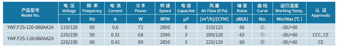 產(chǎn)品型號 YWF.F2S-120-060AA2A