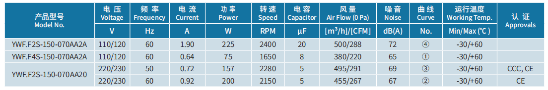 產(chǎn)品型號(hào) YWF.F2S-150-070AA2A