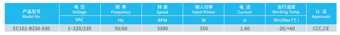 產(chǎn)品型號 EC102-B250-030