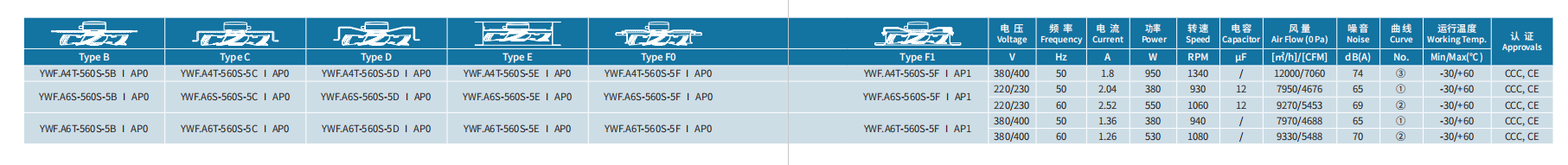 產(chǎn)品型號(hào) YWF.A4T-560S-5DIAP0