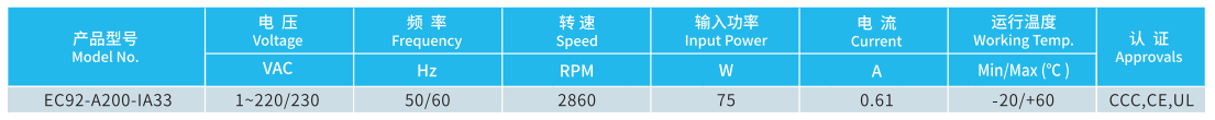 產(chǎn)品型號 EC92-A200-IA33