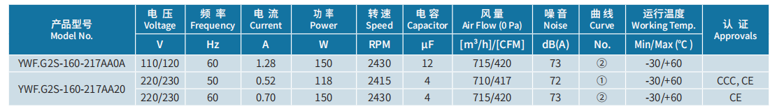 產(chǎn)品型號(hào) YWF.G2S-160-217AA0A