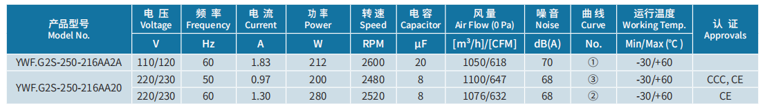 產(chǎn)品型號(hào) YWF.G2S-250-216AA2A