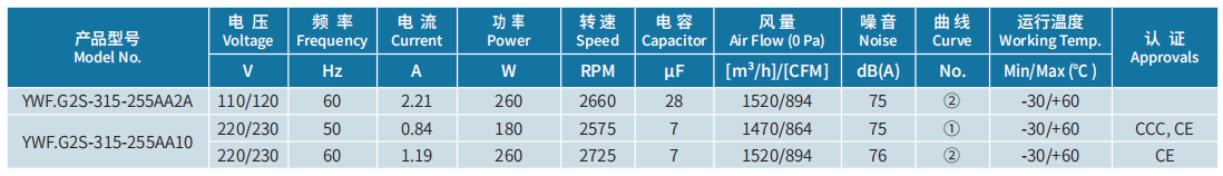 產(chǎn)品型號(hào) YWF.G2S-315-255AA2A