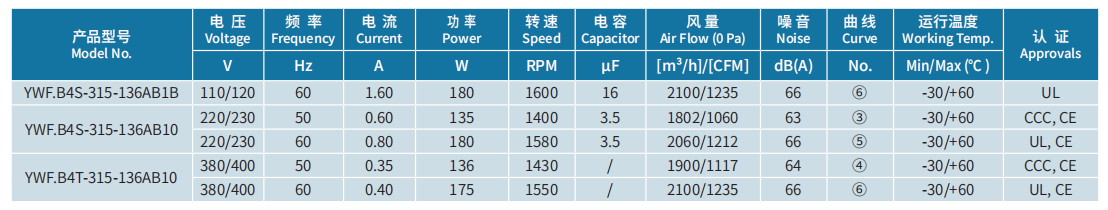 產(chǎn)品型號(hào) YWF.B4S-315-136AB1B